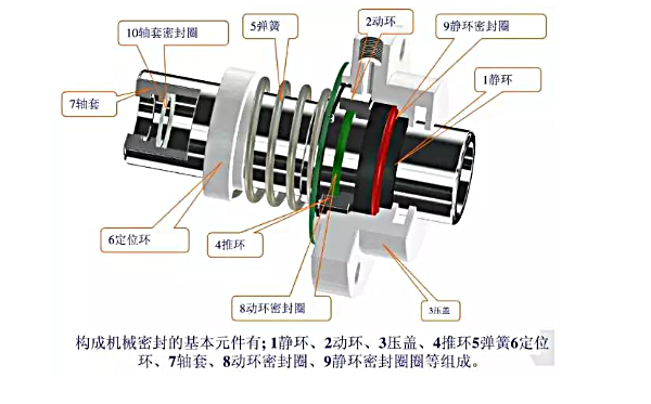 機(jī)封由旋轉(zhuǎn)部件和靜止部件兩部分組成(見(jiàn)下圖),靜環(huán)面成為密封的主密封面。