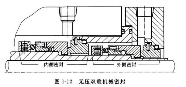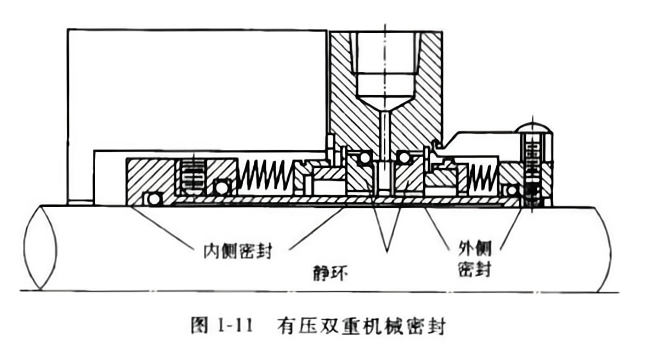 有壓雙端面機(jī)械密封(即Face-to-Face雙端面機(jī)械密封)有兩對(duì)摩擦副,結(jié)構(gòu)復(fù)雜,需要外供封液系統(tǒng),密封腔內(nèi)通入比介質(zhì)壓力高(0.5--1.5)x105Pa 的隔離液,起封堵、潤(rùn)滑等作用。隔離液對(duì)內(nèi)側(cè)密封起到潤(rùn)滑作用。