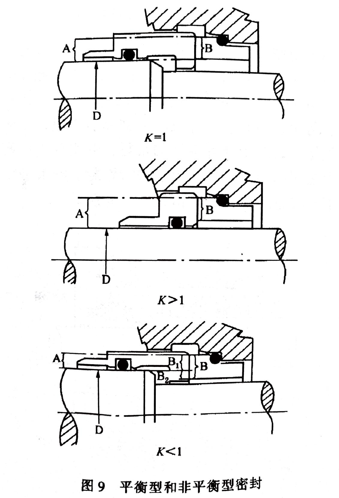 平衡型:載荷系數(shù)K<1.0的密封,也就是由介質(zhì)壓力變化引起的端面比壓的增量小于介質(zhì)壓力的增量,稱為平衡型密封。