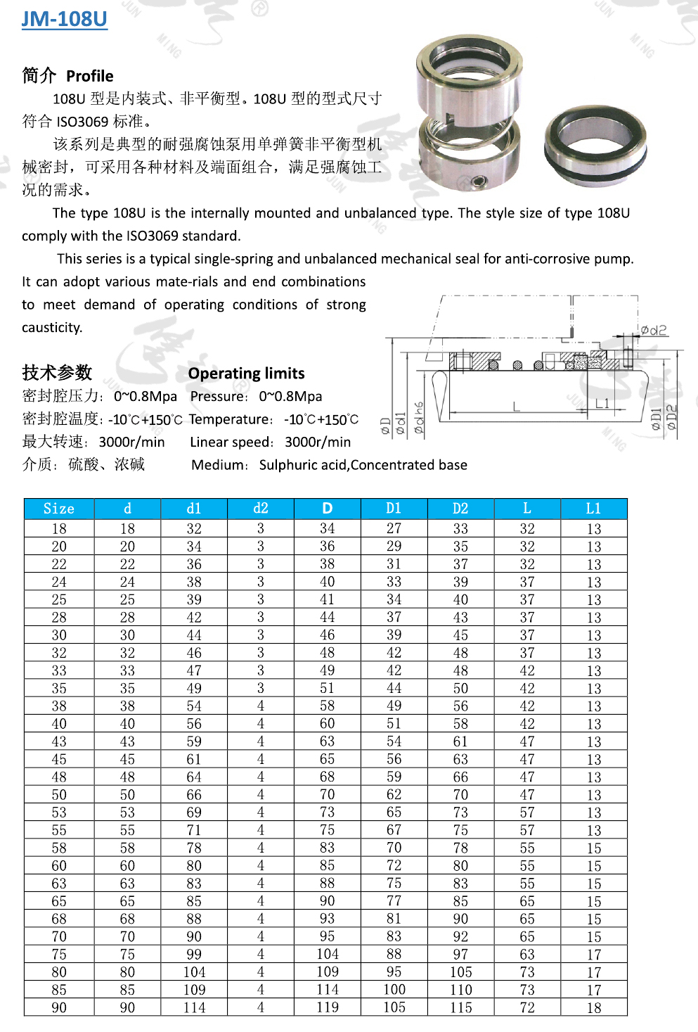 108U型是內(nèi)裝式、非平衡型。108U型的型式尺寸符合ISO3069標(biāo)準(zhǔn)。