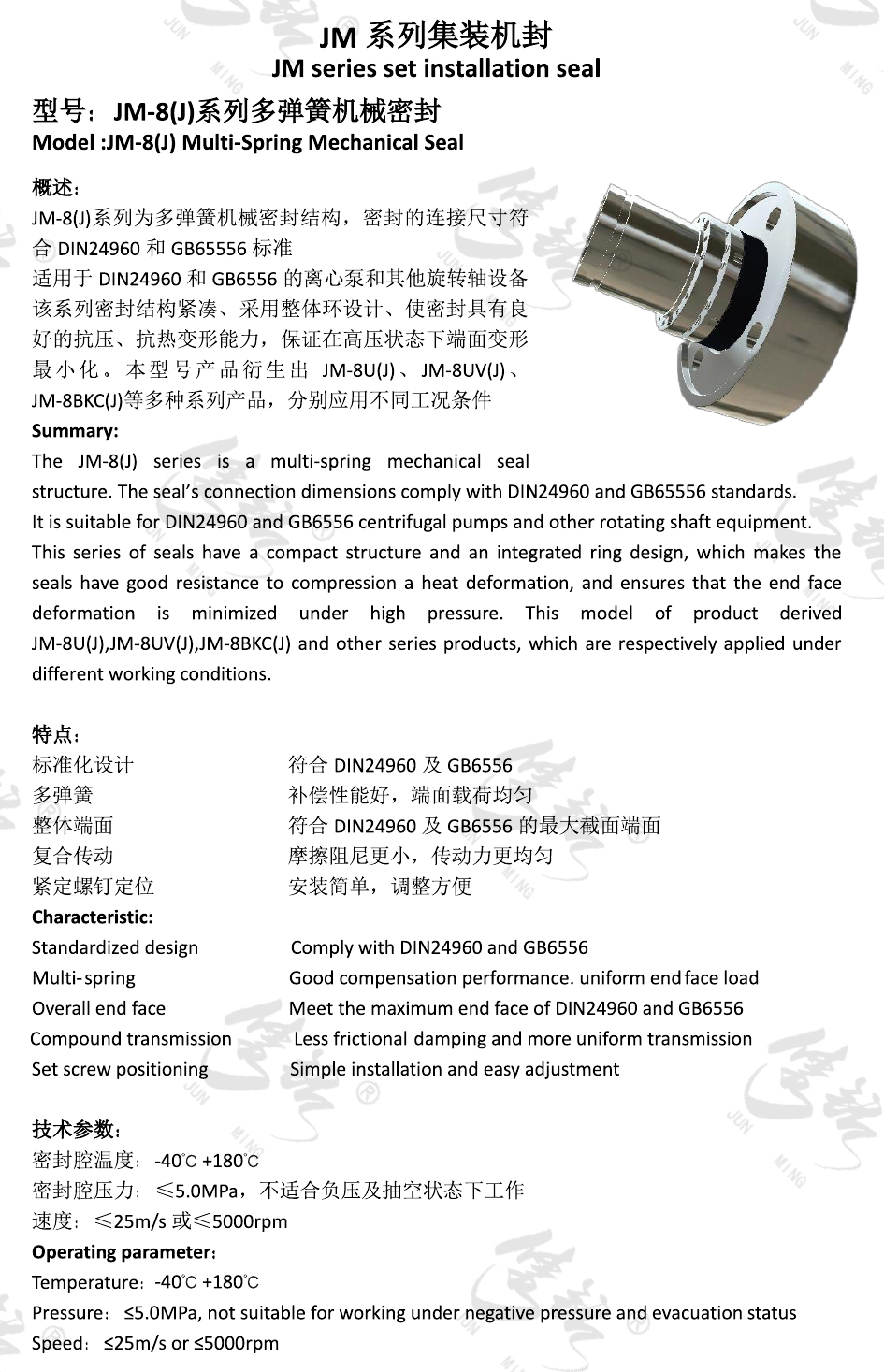 JM-8(J)系列為多彈簧機(jī)械密封結(jié)構(gòu),密封的連接尺寸符合DIN24960和GB65556標(biāo)準(zhǔn)