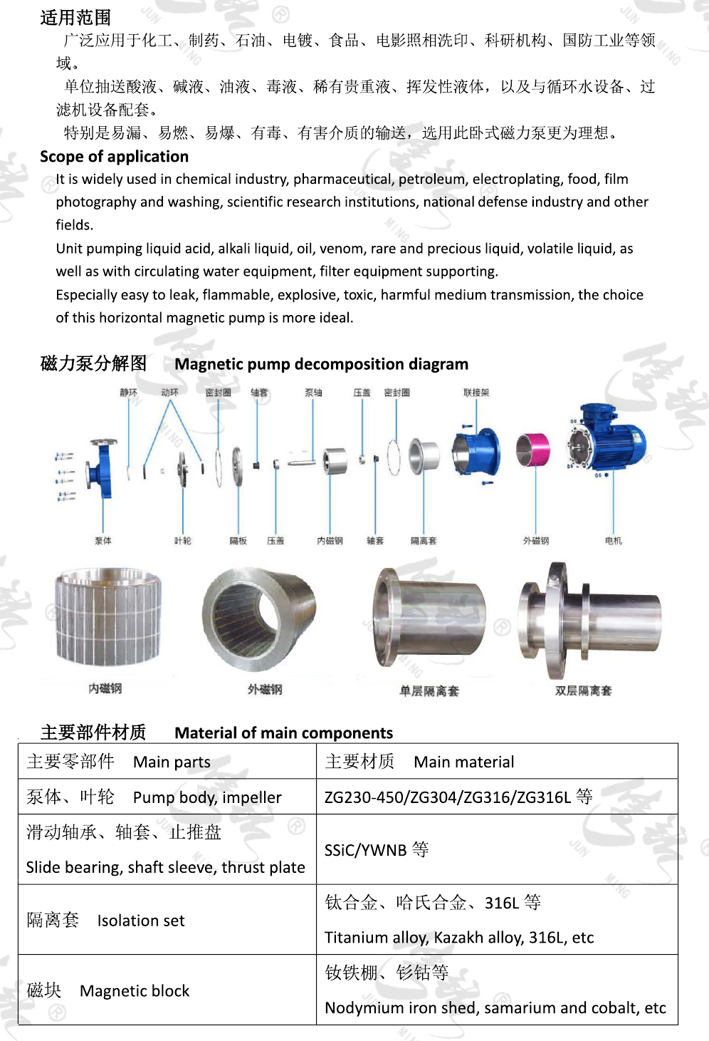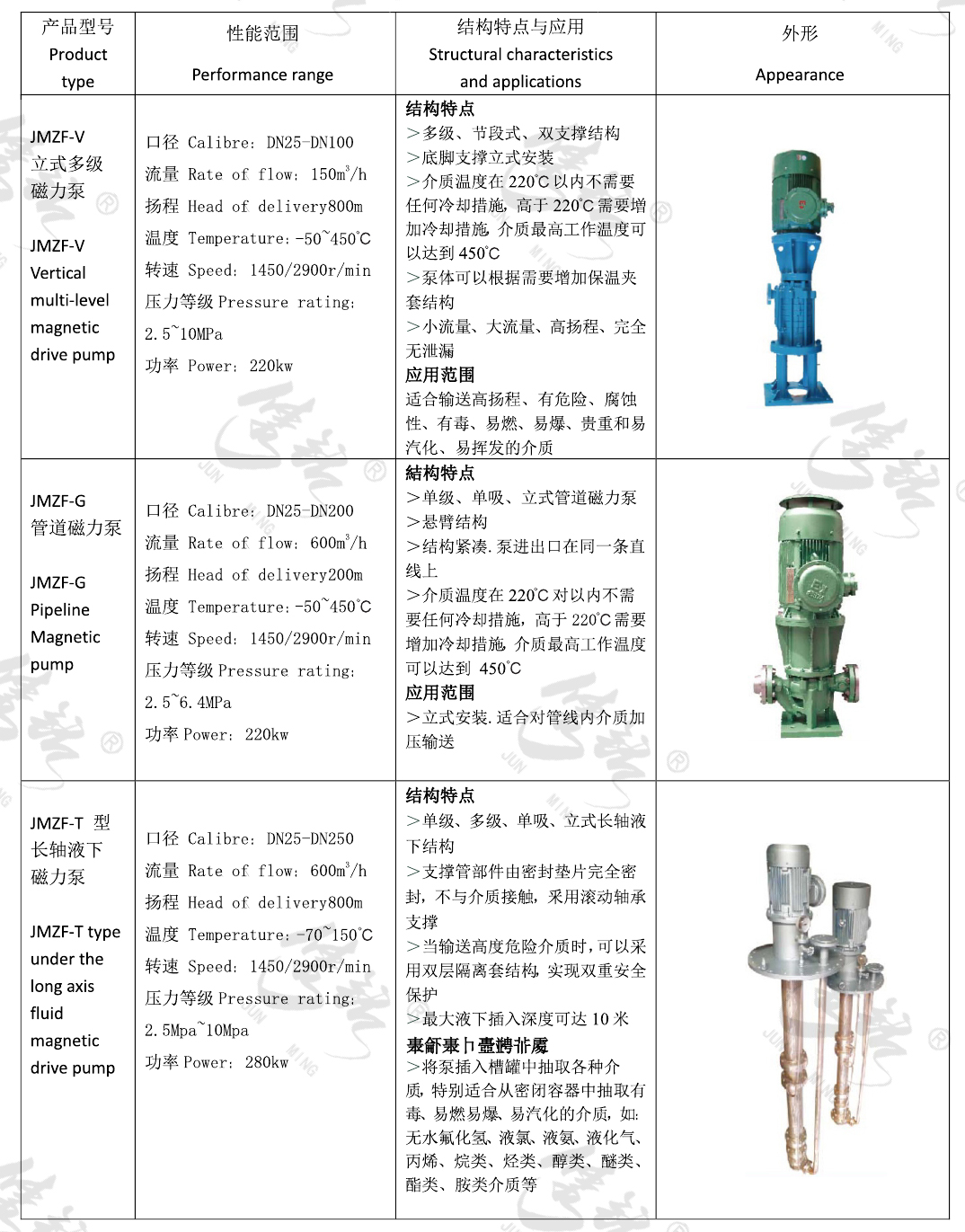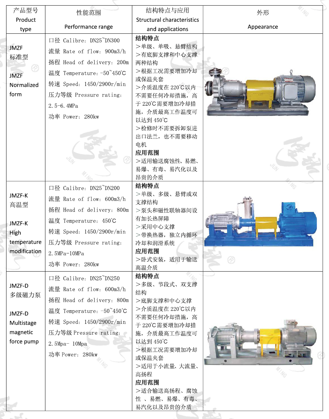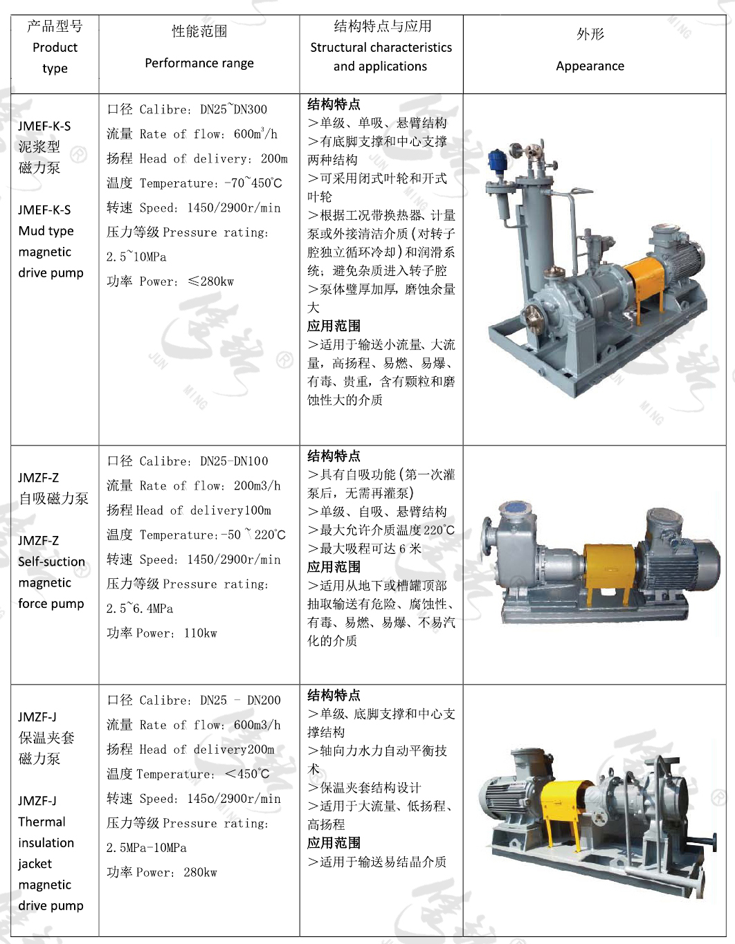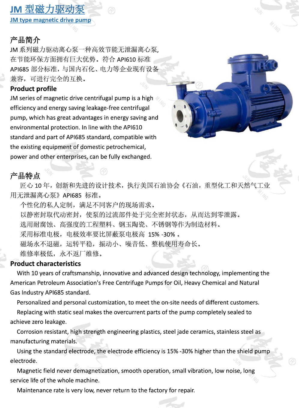 JM系列磁力驅(qū)動離心泵一種高效節(jié)能無泄漏離心泵, 在節(jié)能環(huán)保方面擁有巨大優(yōu)勢。符合API610標(biāo)準API685部分標(biāo)準,與國內(nèi)石化、電力等企業(yè)現(xiàn)有設(shè)備兼容,可進行完全的互換。
